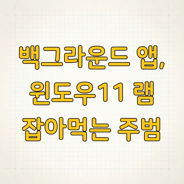 컴퓨터가 켜져 있는 동안에도 우리 눈에는 안 보이지만 뒤에서 계속 돌아가는 프로그램들이 있어요. 바로 백그라운드 앱인데요. 이런 앱들이 램을 상당 부분 차지하고 있을 수 있거든요. 윈도우11에서는 이 백그라운드 앱들을 직접 제어해서 램 사용량을 줄일 수 있어요.
