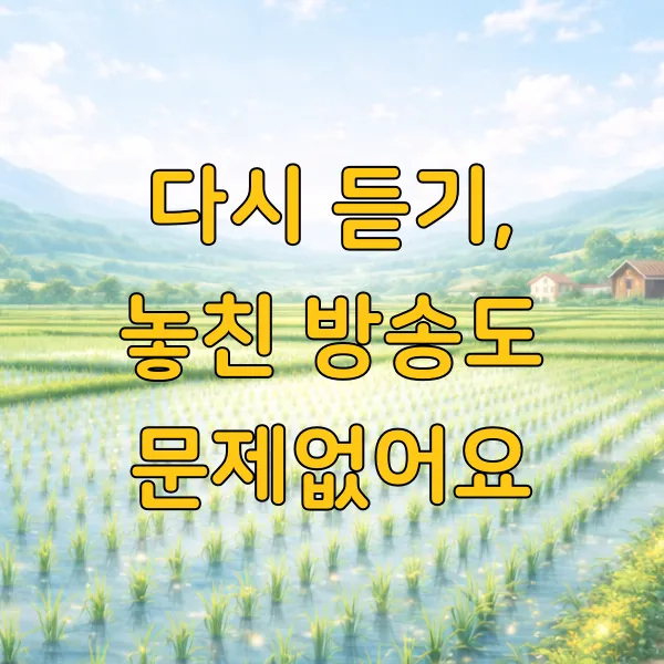 여기서 다시 듣고 싶은 프로그램을 선택하면, 해당 방송의 오디오 파일을 들을 수 있어요. 물론 모든 방송이 다시 듣기를 지원하는 건 아닐 수 있지만, 인기 있는 프로그램들은 대부분 다시 듣기 서비스가 제공되거든요.